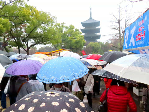 最近、開催日についての質問メールが多いのですが、 東寺の弘法市は毎月21日にしか開催されません。 また、雨天でも開催されます。 駐車場に限りがありますので、 出来るだけ電車かバスでお越しください。 季節により拝観時間が変わりますのでご注意ください。